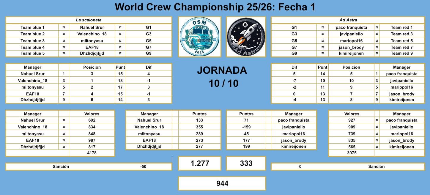 WCC 25/26 - RESULT FINALpor Alexander GuevaraResultados